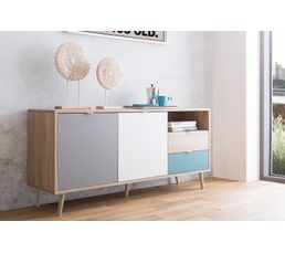 Buffet Scandinave Aruba Chene Bleu Gris Et Blanc Buffet But